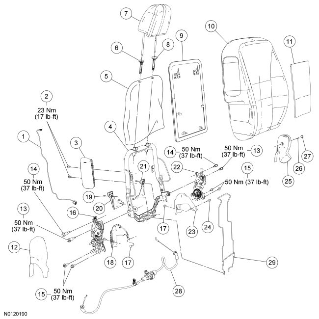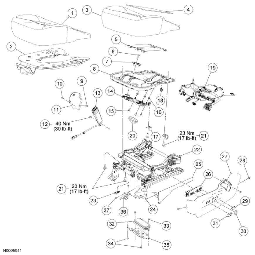 NOTE: Driver seat shown, passenger similar.