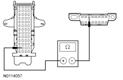 - Measure the resistance between the DLC (Data Link Connector) C251-6, circuit VDB04 (WH/BU), harness side and the DLC (Data Link Connector) C251-14, circuit VDB05 (WH), harness side.