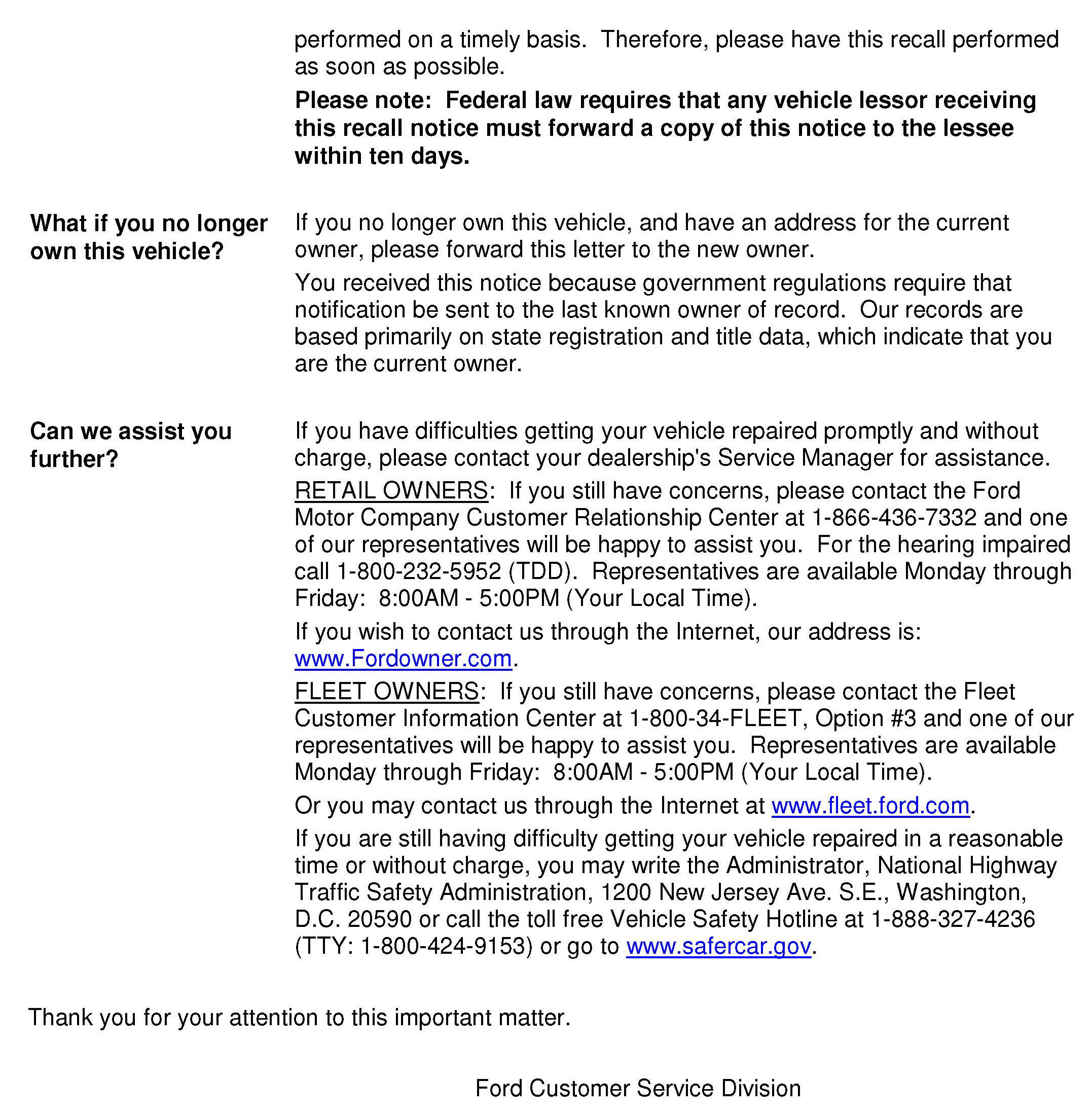 Recall - Liftgate Lock Non-Compliance