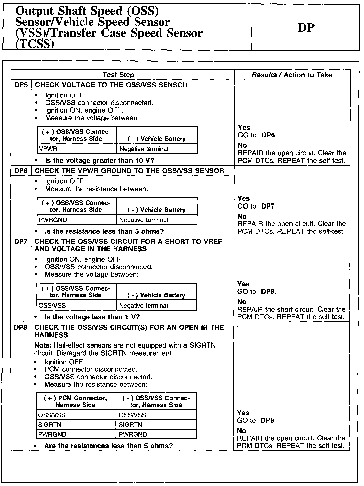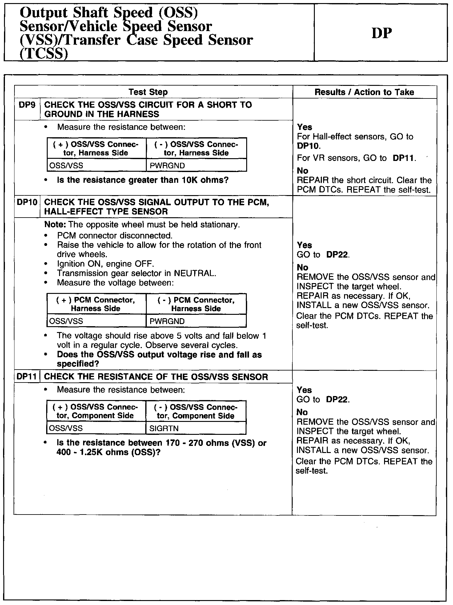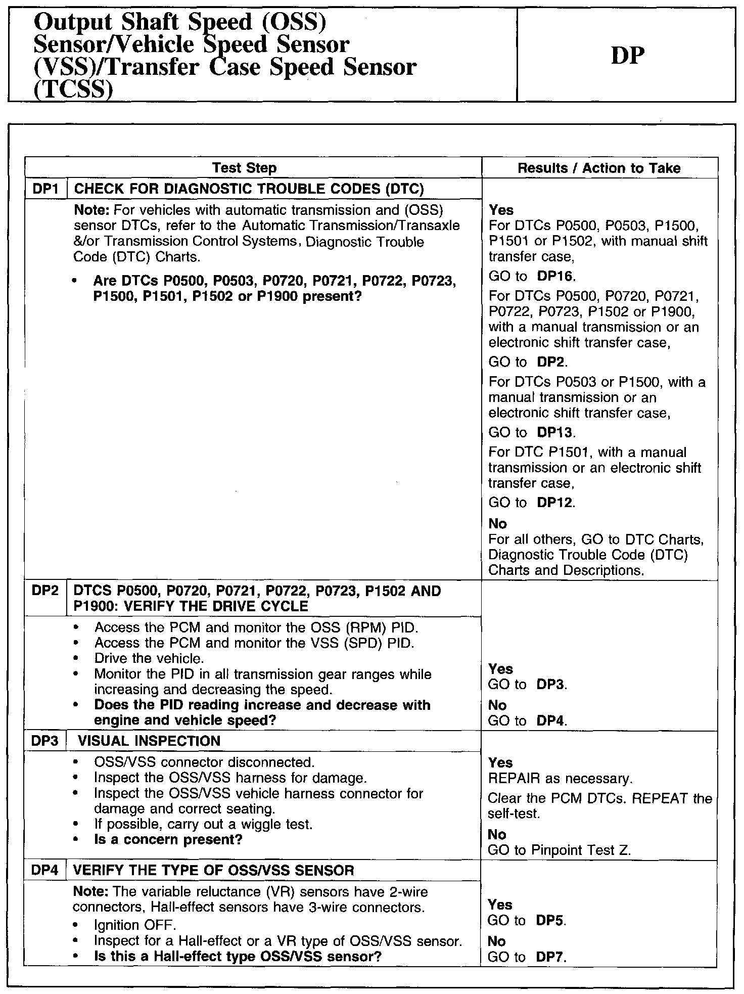 Test DP: Output Shaft Speed (OSS) Sensor/Vehicle Speed Sensor (VSS)/Transfer Case Speed Sensor (TCSS)