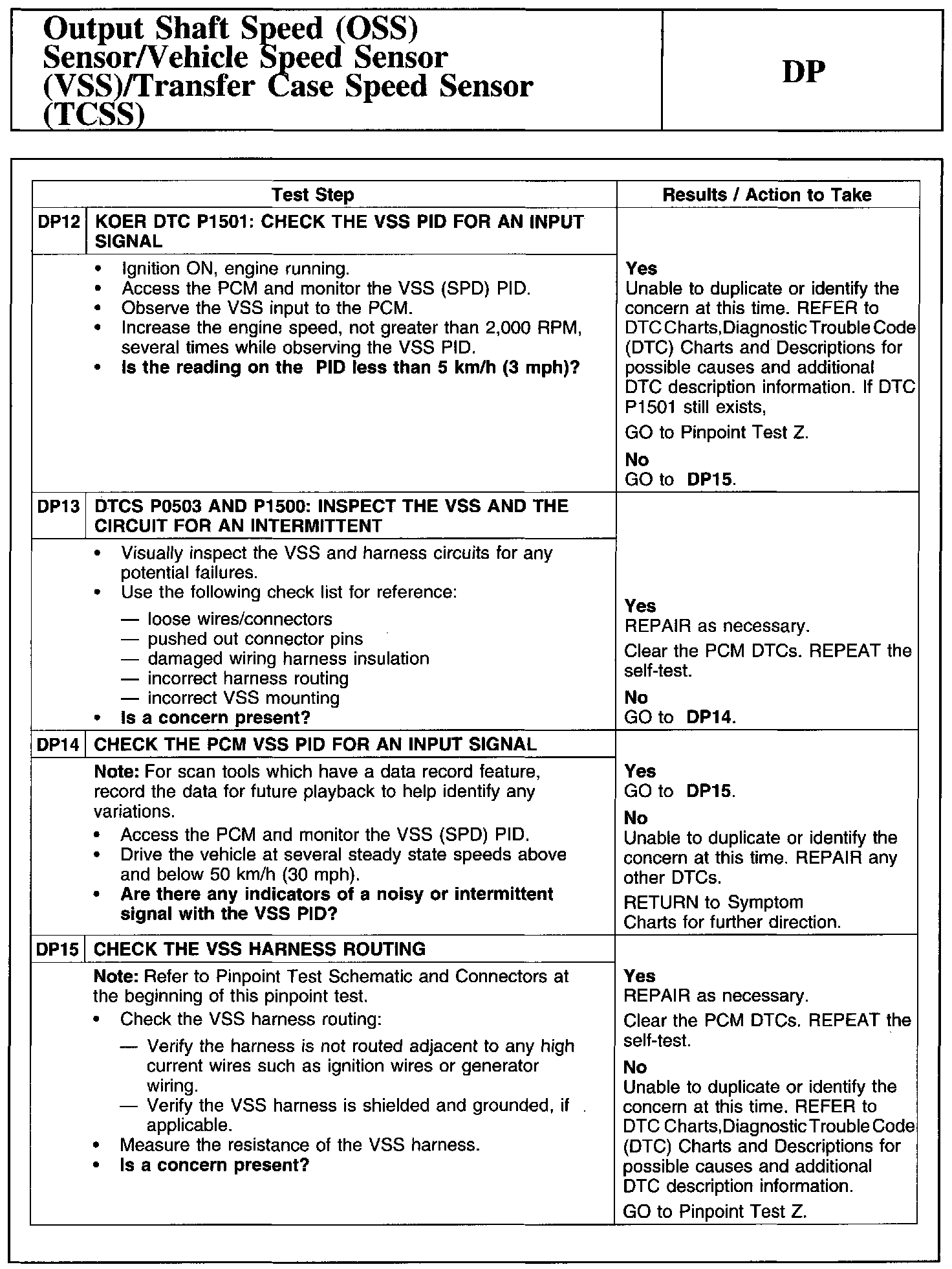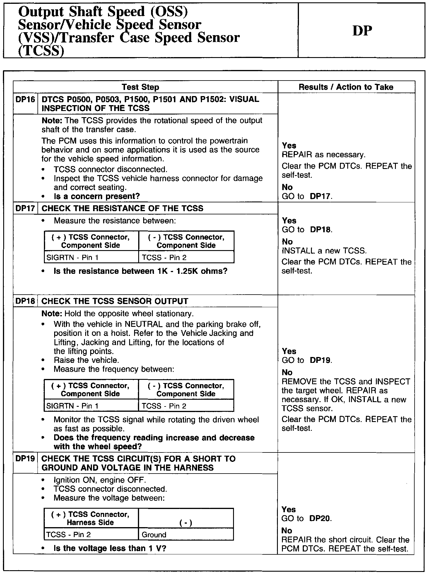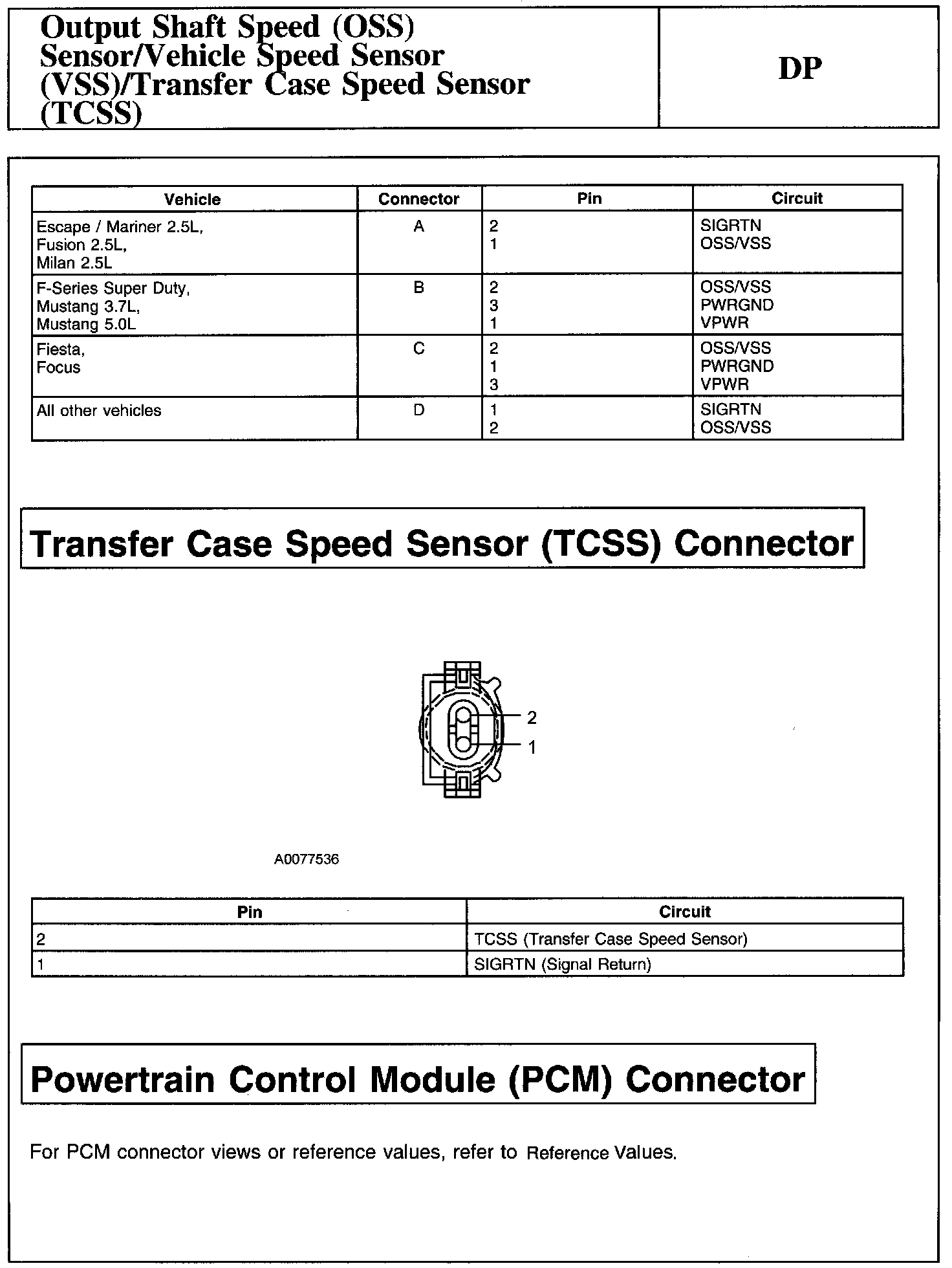 Test DP: Output Shaft Speed (OSS) Sensor/Vehicle Speed Sensor (VSS)/Transfer Case Speed Sensor (TCSS)