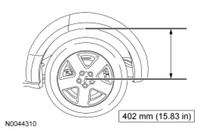 11. Before tightening any suspension busing fasteners, the suspension must be at 402 mm (15.826 in) between the center of the hub and the lip of the fender. This will prevent incorrect clamp load and bushing damage.