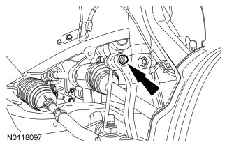 9. NOTICE: Do not tighten the halfshaft nuts with the vehicle on the ground. The nuts must be tightened to specification before the vehicle Is lowered onto the wheels. Wheel bearing damage will occur If the wheel bearing Is loaded with the weight of the vehicle applied.