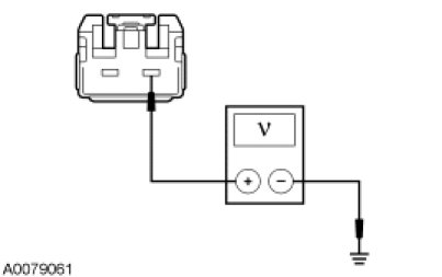 - Measure the voltage between the DSM C3299b-1, circuit SBP12 (GN/RD), harness side and ground.