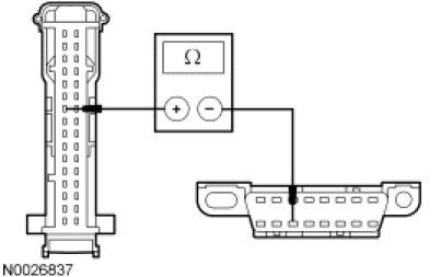 - Measure the resistance between the audio RCU module C3077-7, circuit VDB07 (VT/OG), harness side and the DLC C251-11, circuit VDB07 (VT/OG), harness side.