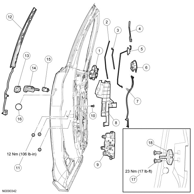 Front Door Handles, Locks and Latches - Exploded View