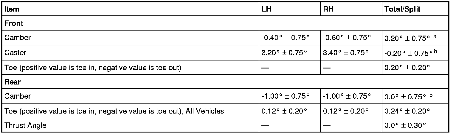 a Camber Total/Split = LH Camber - RH Camber