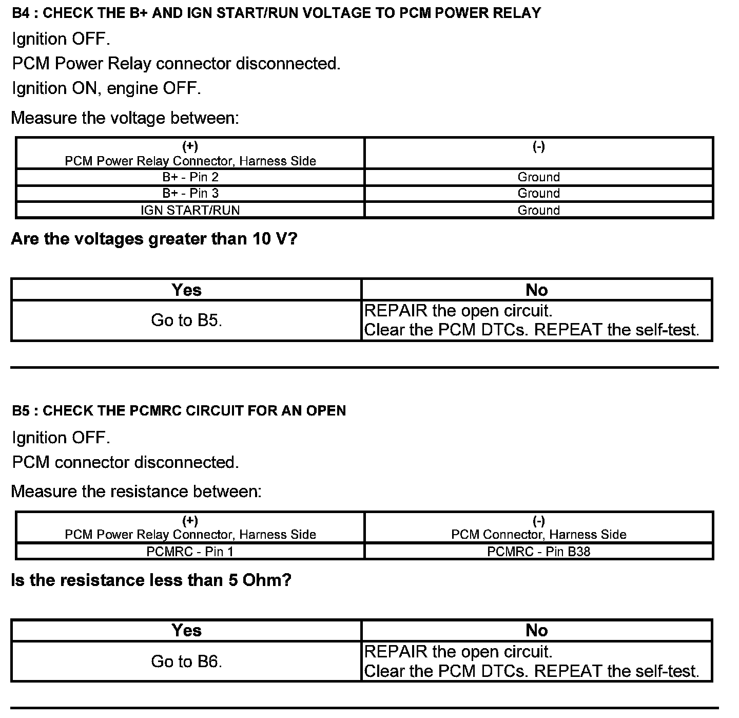 Test B: Powertrain Control Module (PCM) Power Relay