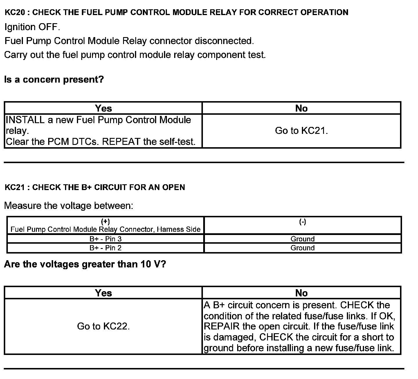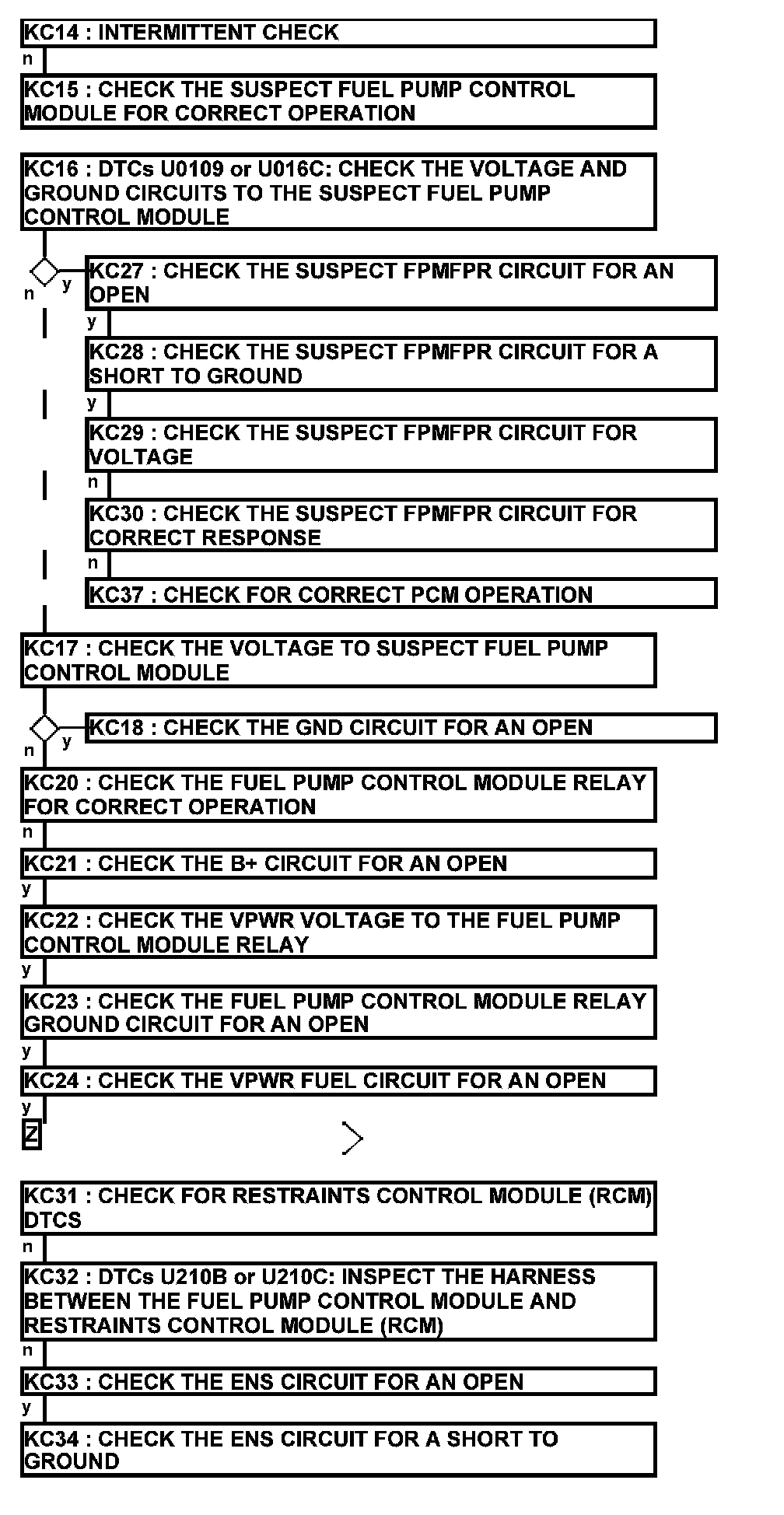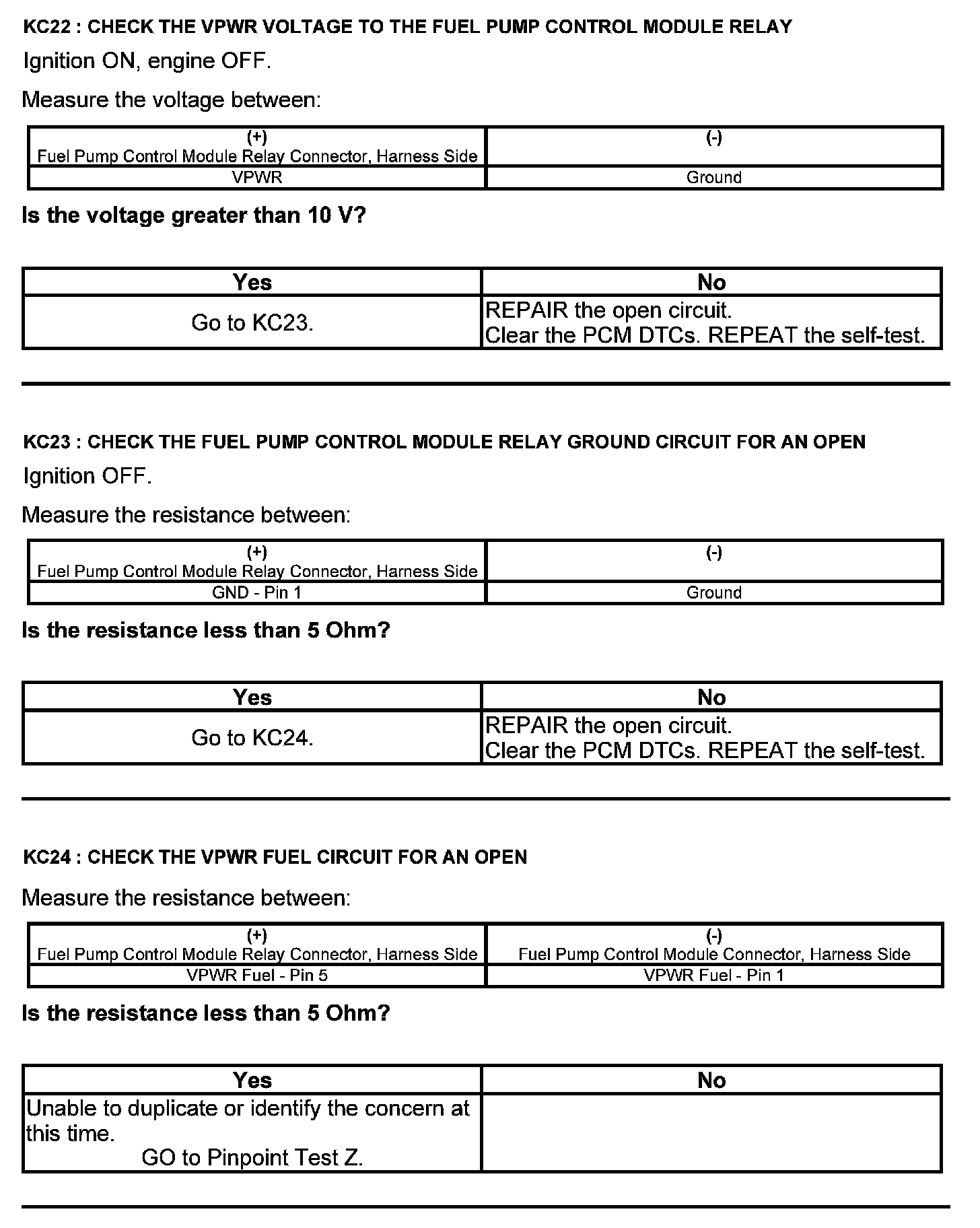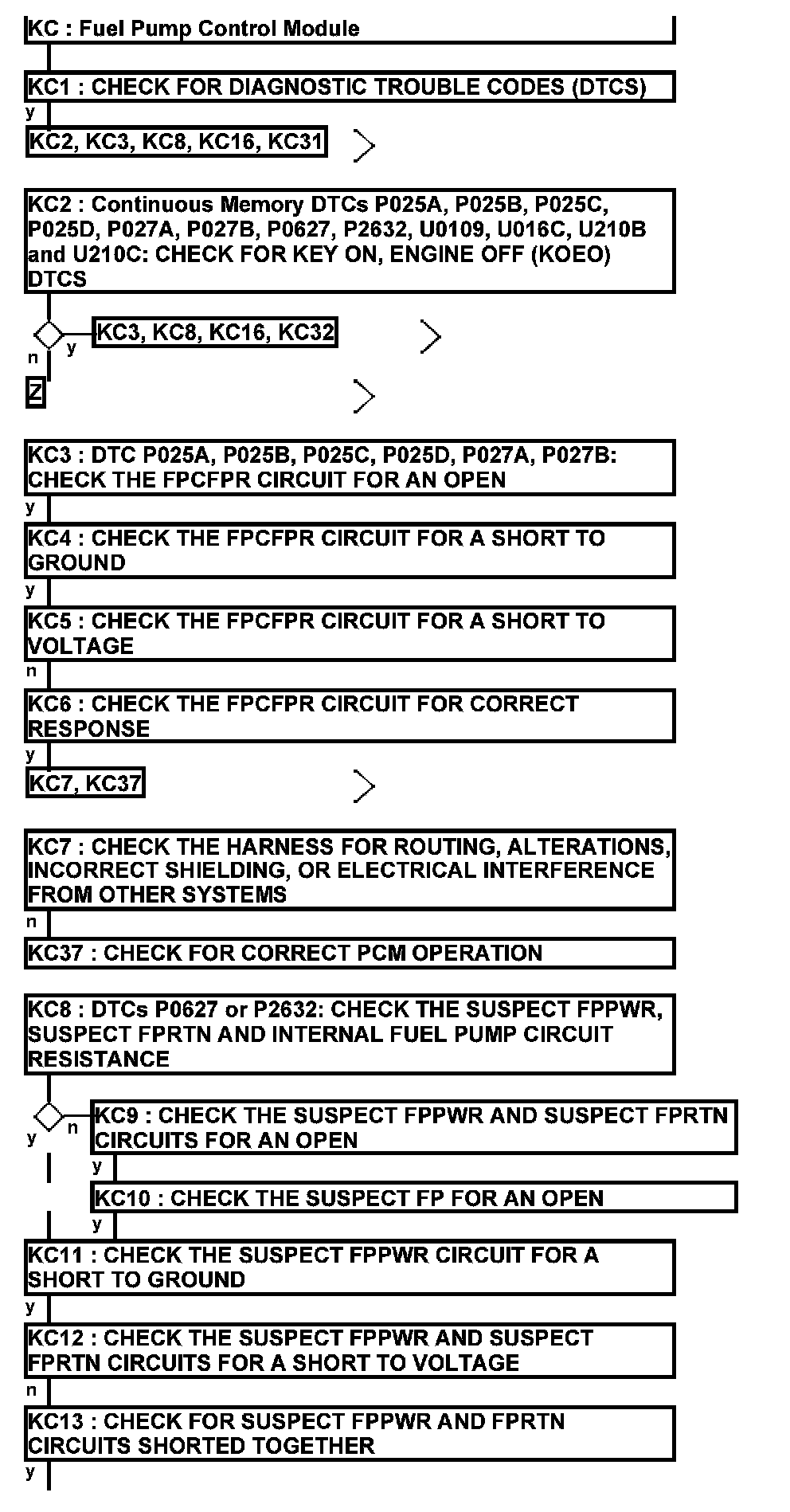 Home >> Lincoln >> 2012 >> MKS FWD V6-3.7L >> Repair and Diagnosis >> Powertrain Management >> Computers and Control Systems >> Testing and Inspection >> Pinpoint Tests >> Test KC: Fuel Pump Control Module