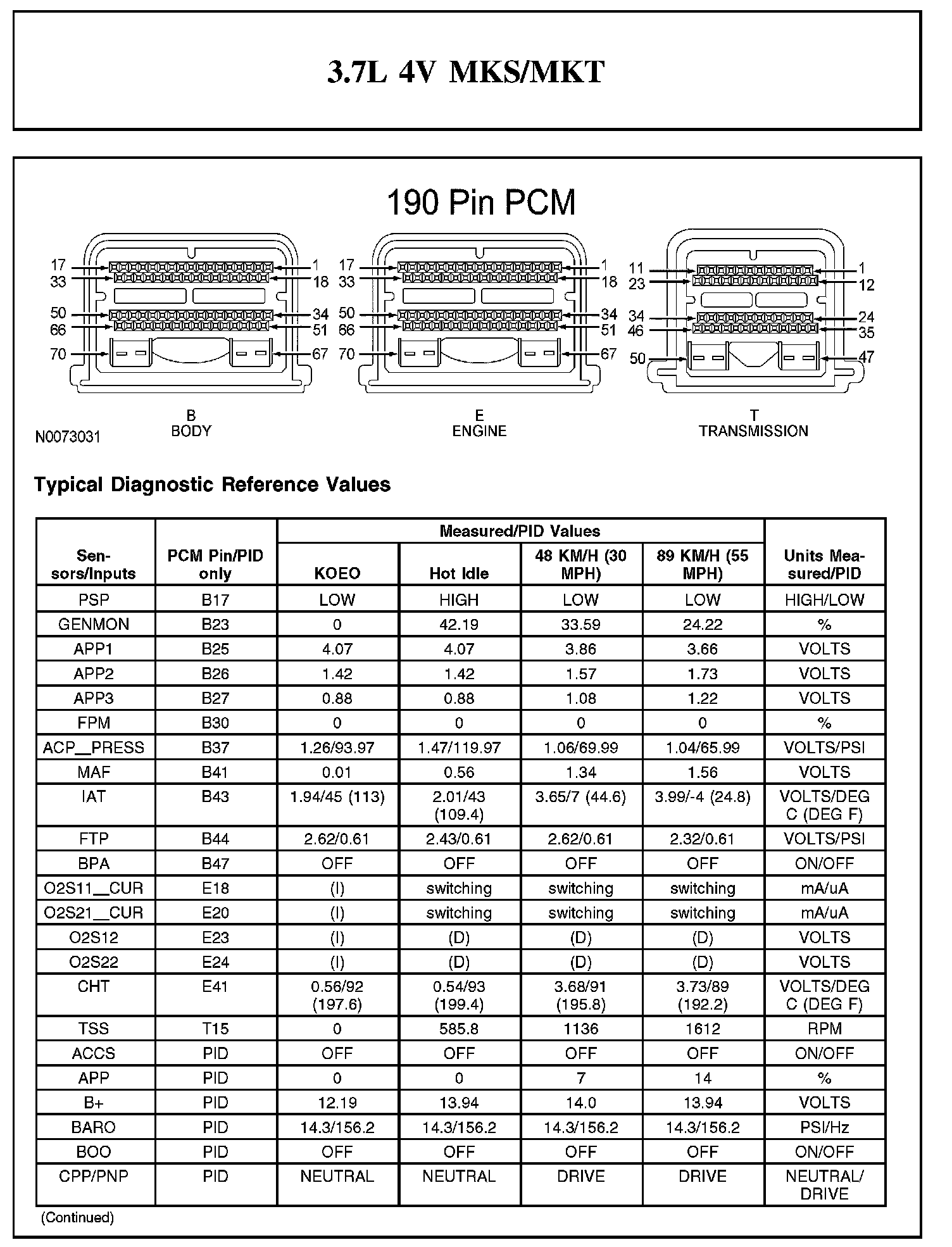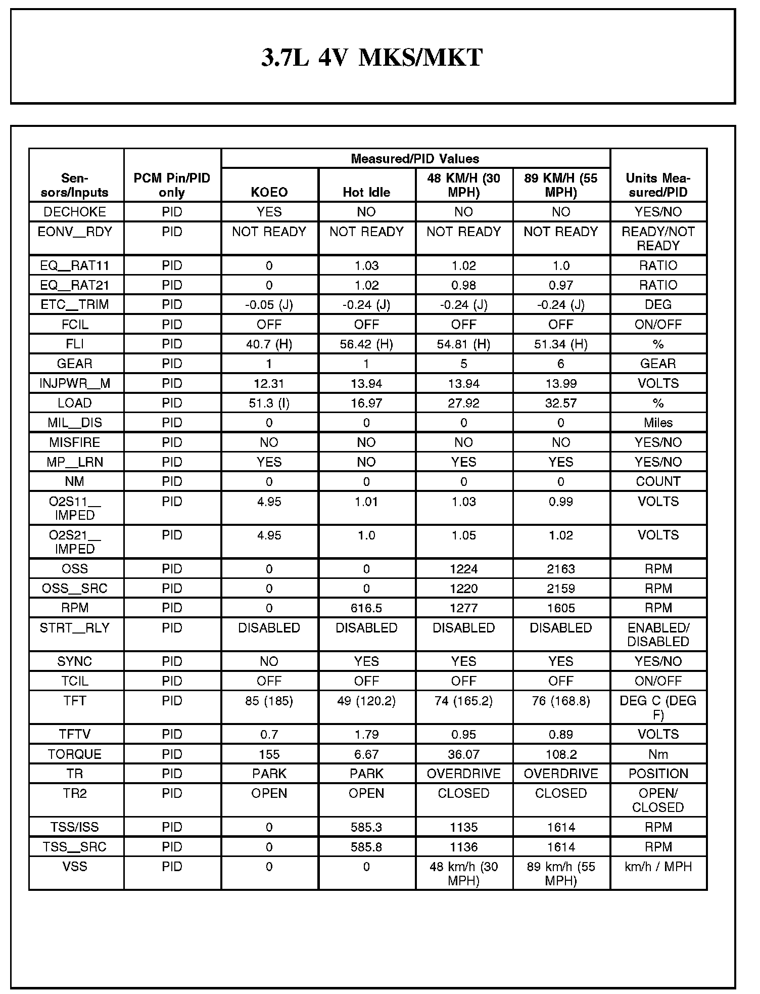 Home >> Lincoln >> 2012 >> MKS FWD V6-3.7L >> Repair and Diagnosis >> Powertrain Management >> Computers and Control Systems >> Testing and Inspection >> Scan Tool Testing and Procedures >> Typical Diagnostic Reference Values