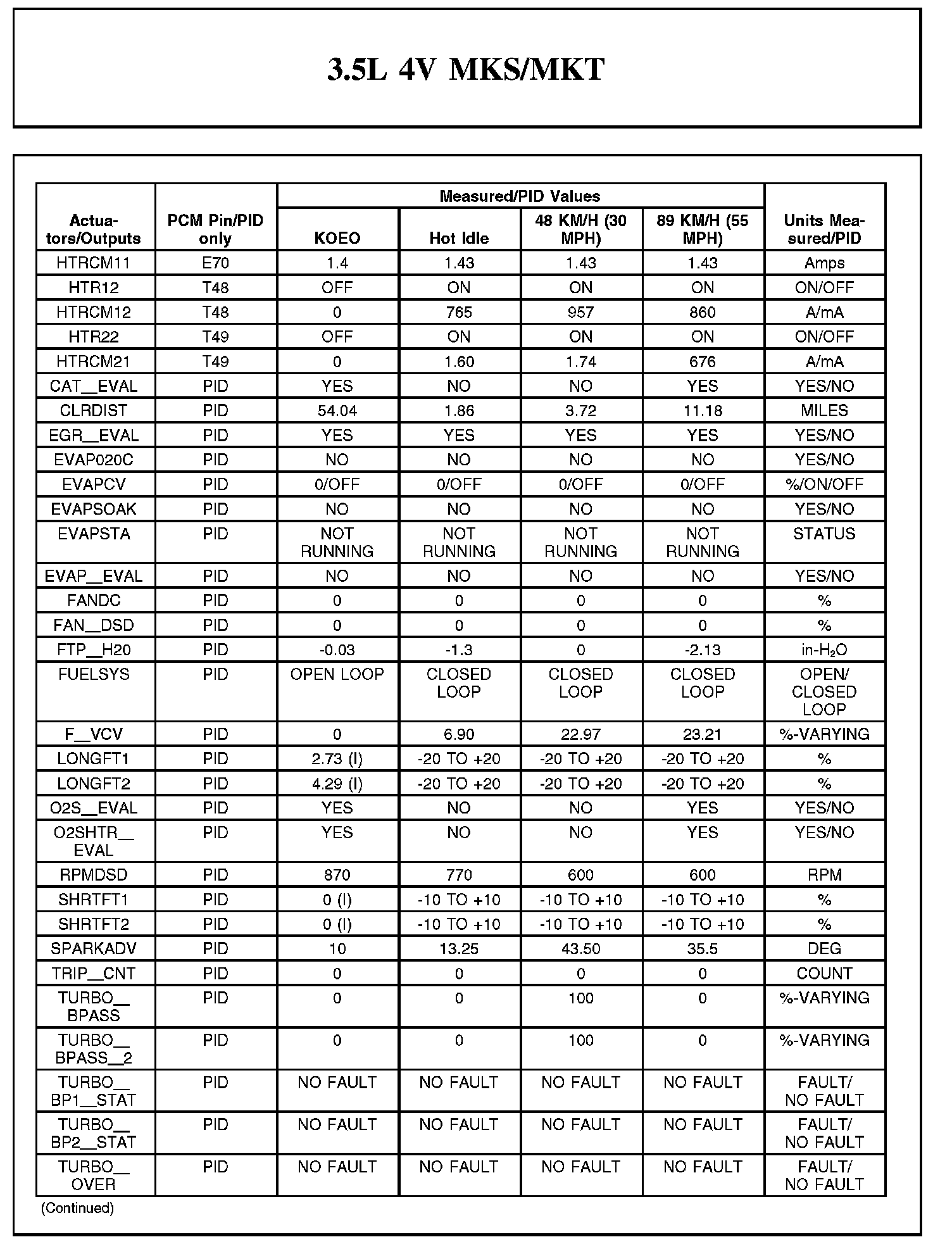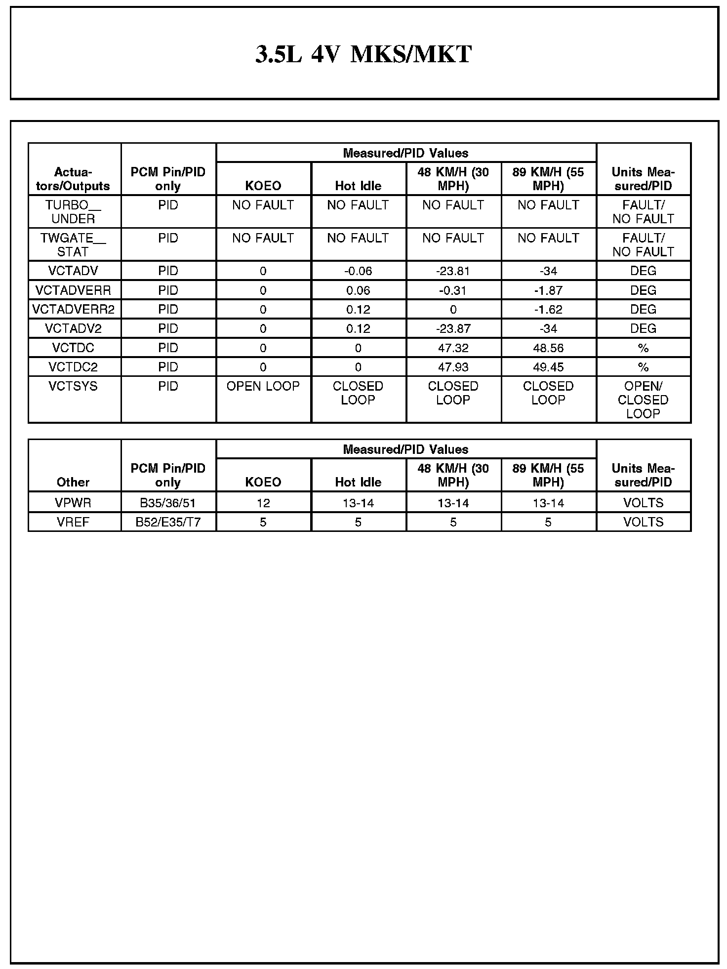 Home >> Lincoln >> 2012 >> MKT AWD V6-3.5L Turbo >> Repair and Diagnosis >> Powertrain Management >> Computers and Control Systems >> Testing and Inspection >> Scan Tool Testing and Procedures >> Typical Diagnostic Reference Values
