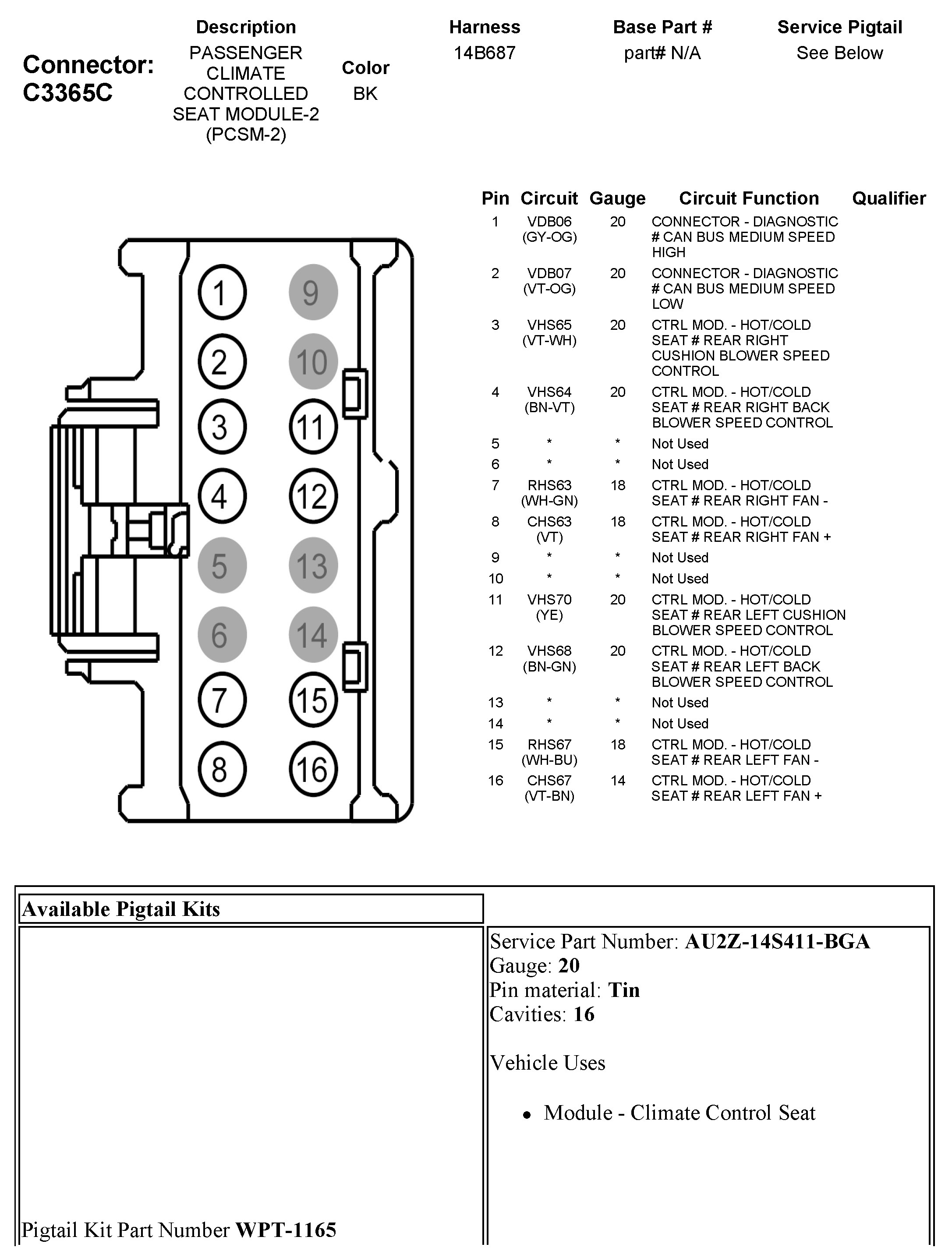 C3365C Passenger Climate Controlled Seat Module-2 (PCSM-2)