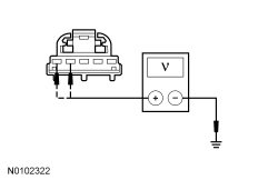 - Measure the voltage between the HUD (Head Up Display) module C2395-4, circuit CBP31 (BU/OG), harness side and ground; and between the HUD (Head Up Display) module C2395-5, circuit SBP26 (YE/RD), harness side and ground.