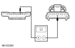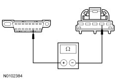 - Measure the resistance between the HUD (Head Up Display) module C2395-3, circuit VDB04 (WH/BU), harness side and the Data Link Connector (DLC) C251-6, circuit VDB04 (WH/BU), harness side.