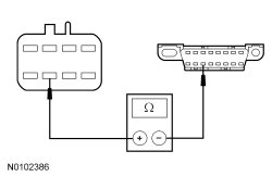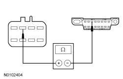 - Measure the resistance between the HCM-2 (Headlamp Control Module 2) inline C913-F, circuit VDB07 (VT/OG), harness (female) side and the DLC (Data Link Connector) C251-11, circuit VDB07 (VT/OG), harness side.