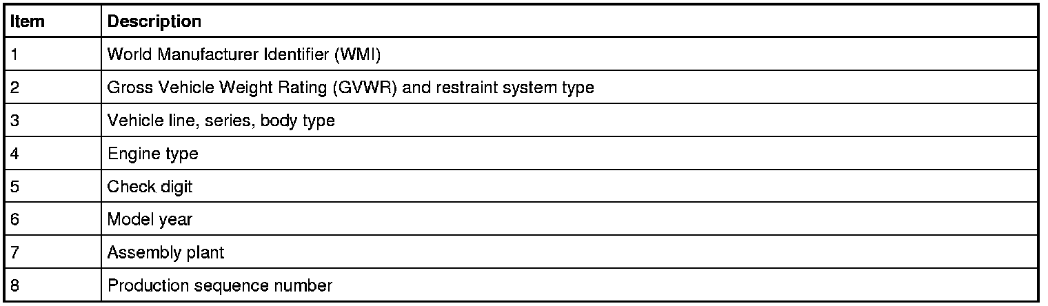 The fourth VIN (Vehicle Identification Number) position identifies the Gross Vehicle Weight Rating (GVWR) and restraint system used.