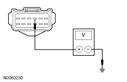 - Measure the voltage between the LH headlamp C1021B-3, circuit CBB89 (VT/GY), harness side and ground.