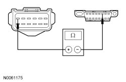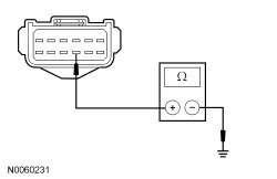 - Measure the resistance between the LH headlamp C1021B-9, circuit GD120 (BK/GN), harness side and ground.