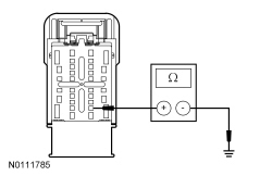 - Measure the resistance between the BCM (Body Control Module) C2280D-25, circuit GD133 (BK), harness side and ground.