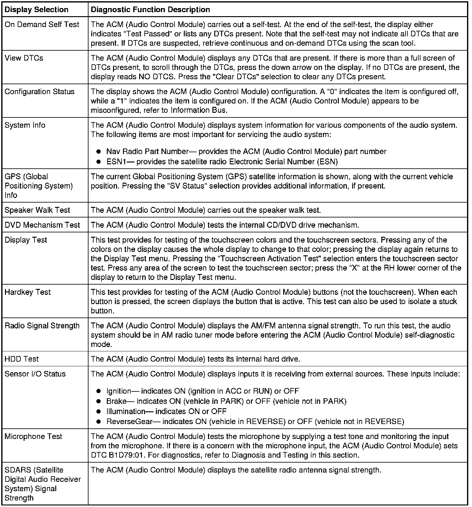 5. To exit the self-diagnostic mode, turn the ACM (Audio Control Module) off.