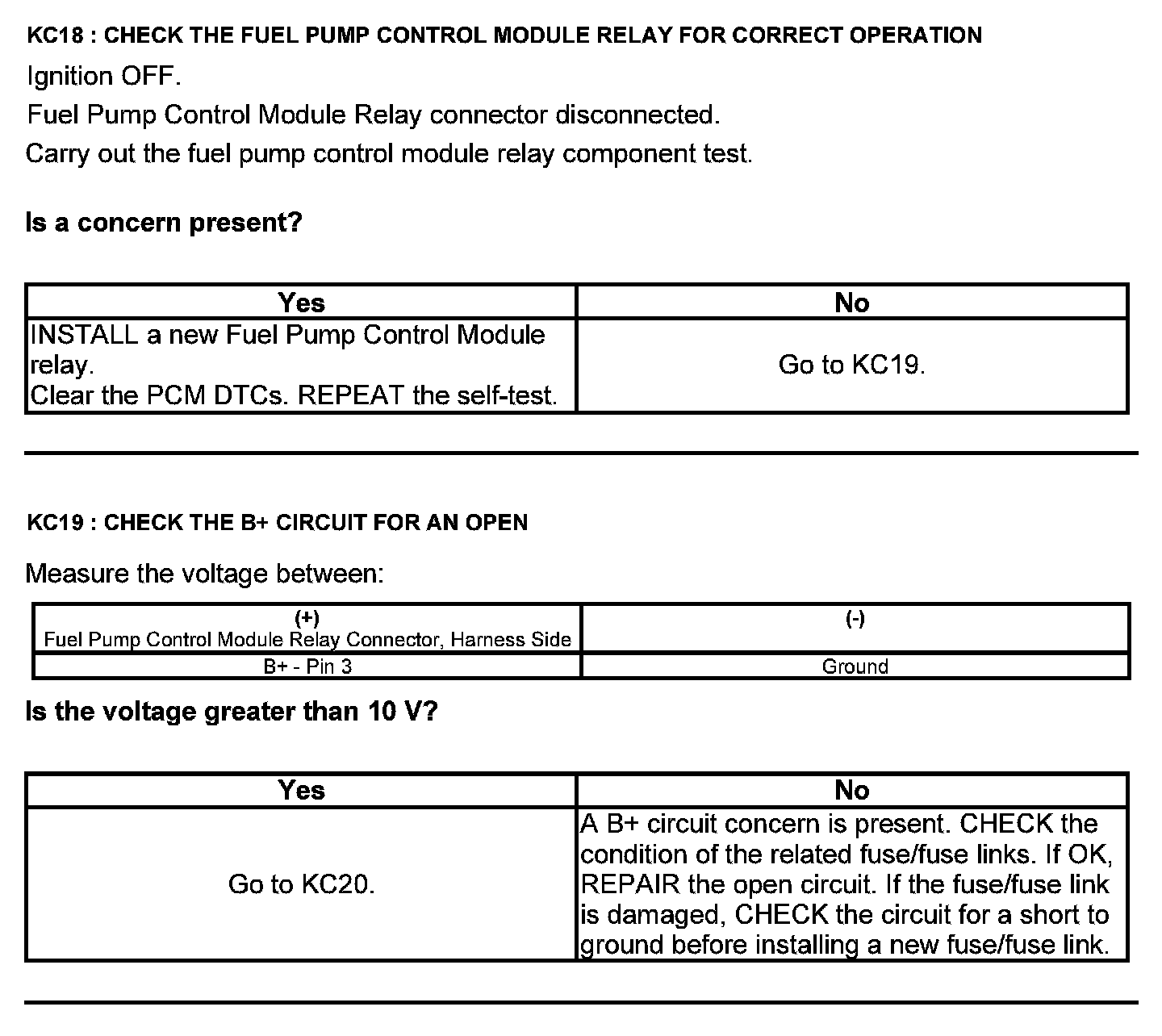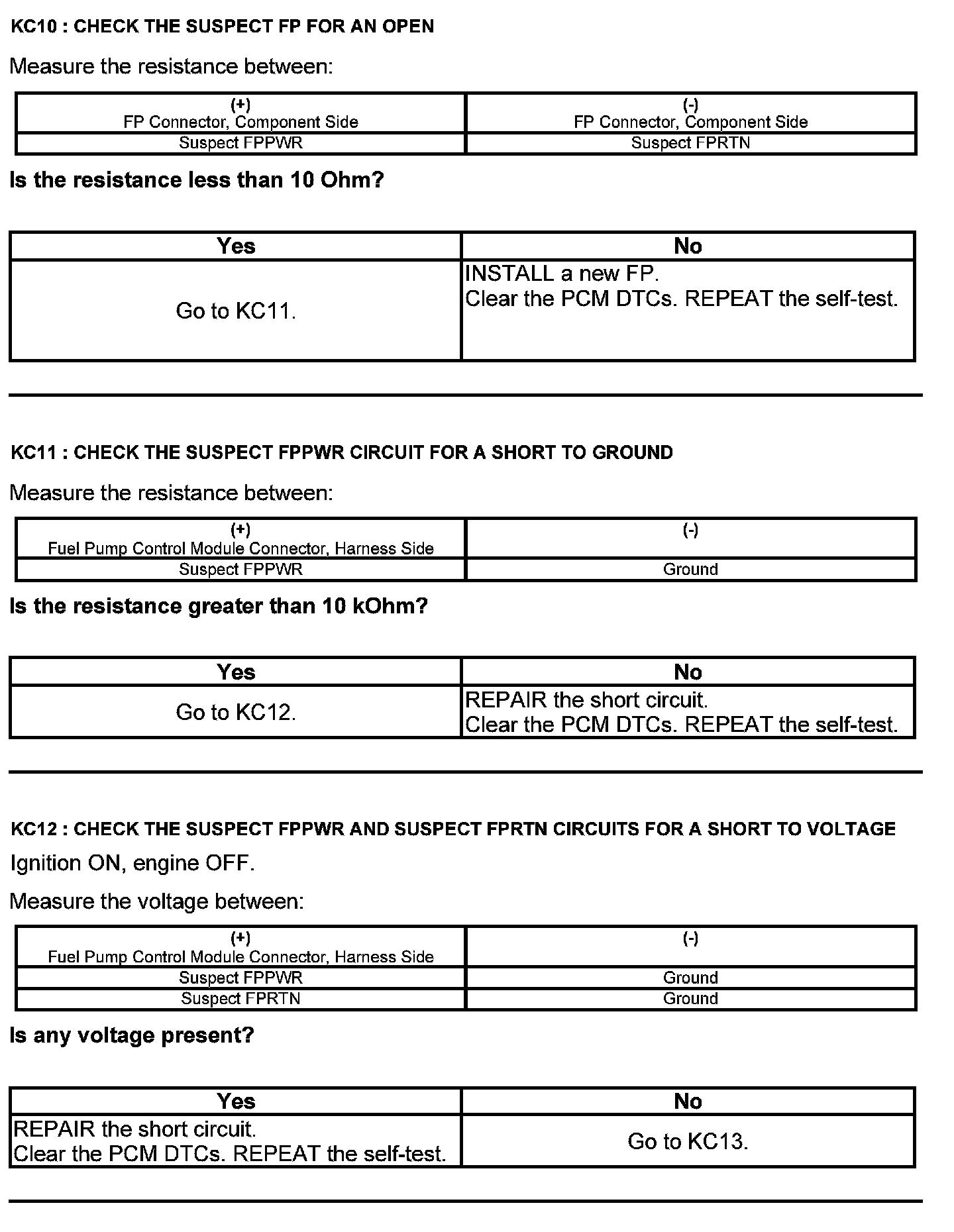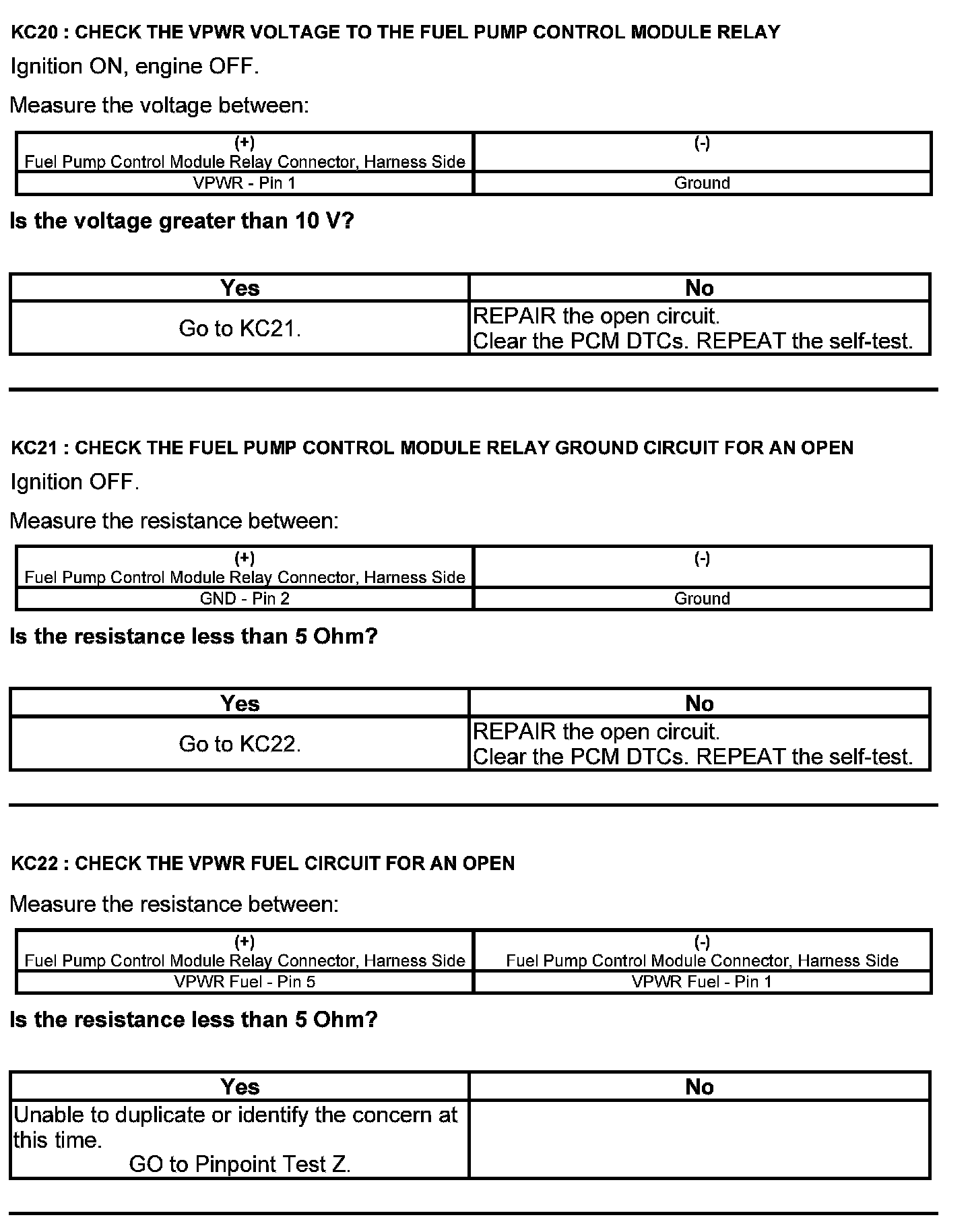 Home >> Lincoln >> 2012 >> MKZ AWD V6-3.5L >> Repair and Diagnosis >> Powertrain Management >> Computers and Control Systems >> Testing and Inspection >> Pinpoint Tests >> Test KC: Fuel Pump Control Module