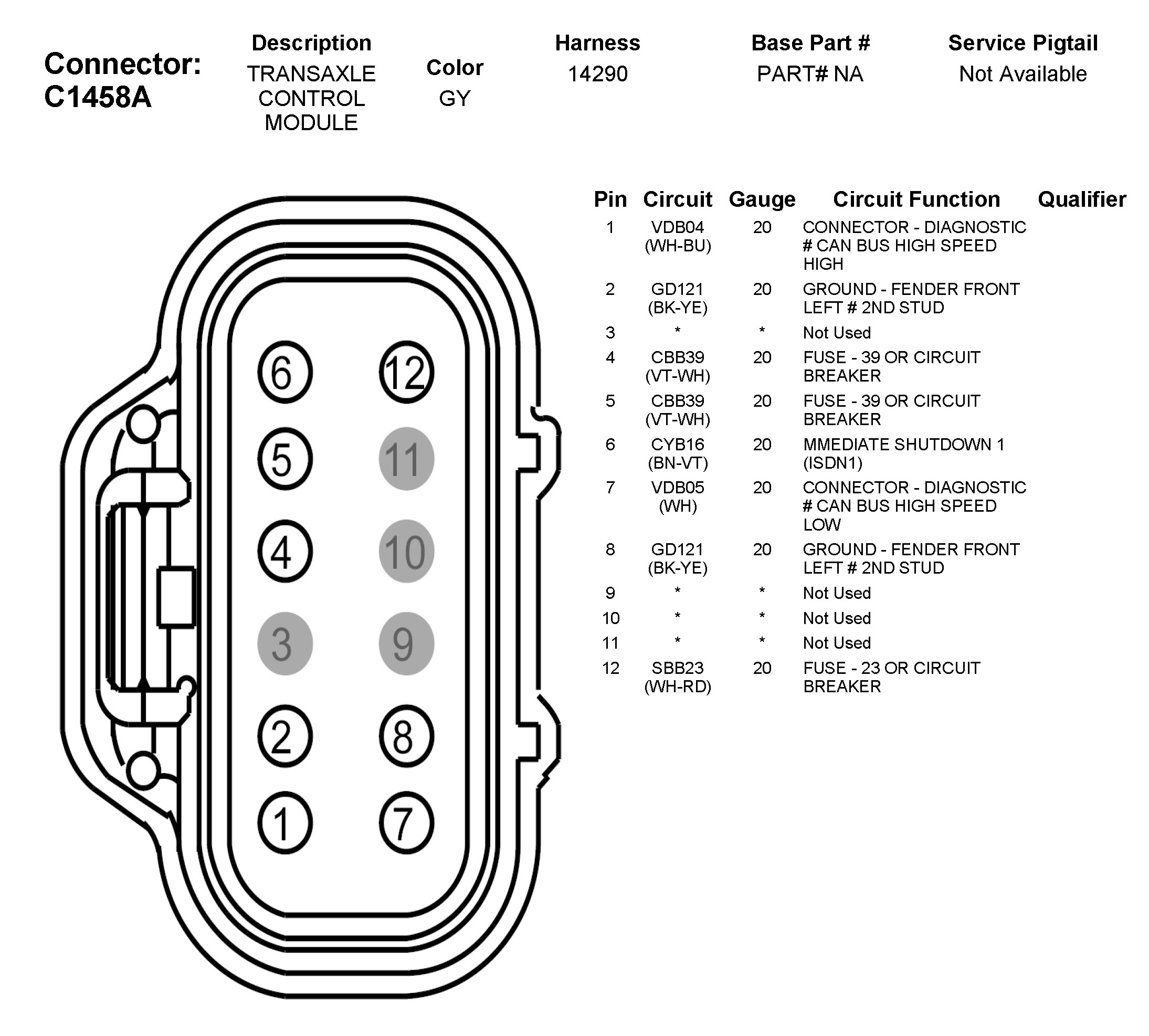 C1458A Transaxle Control Module