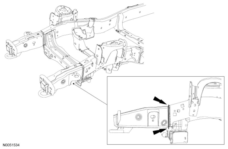 NOTE: Observe prescribed welding procedures when carrying out repairs to the frame assembly. For additional information, refer to Welding Precautions - Steel .