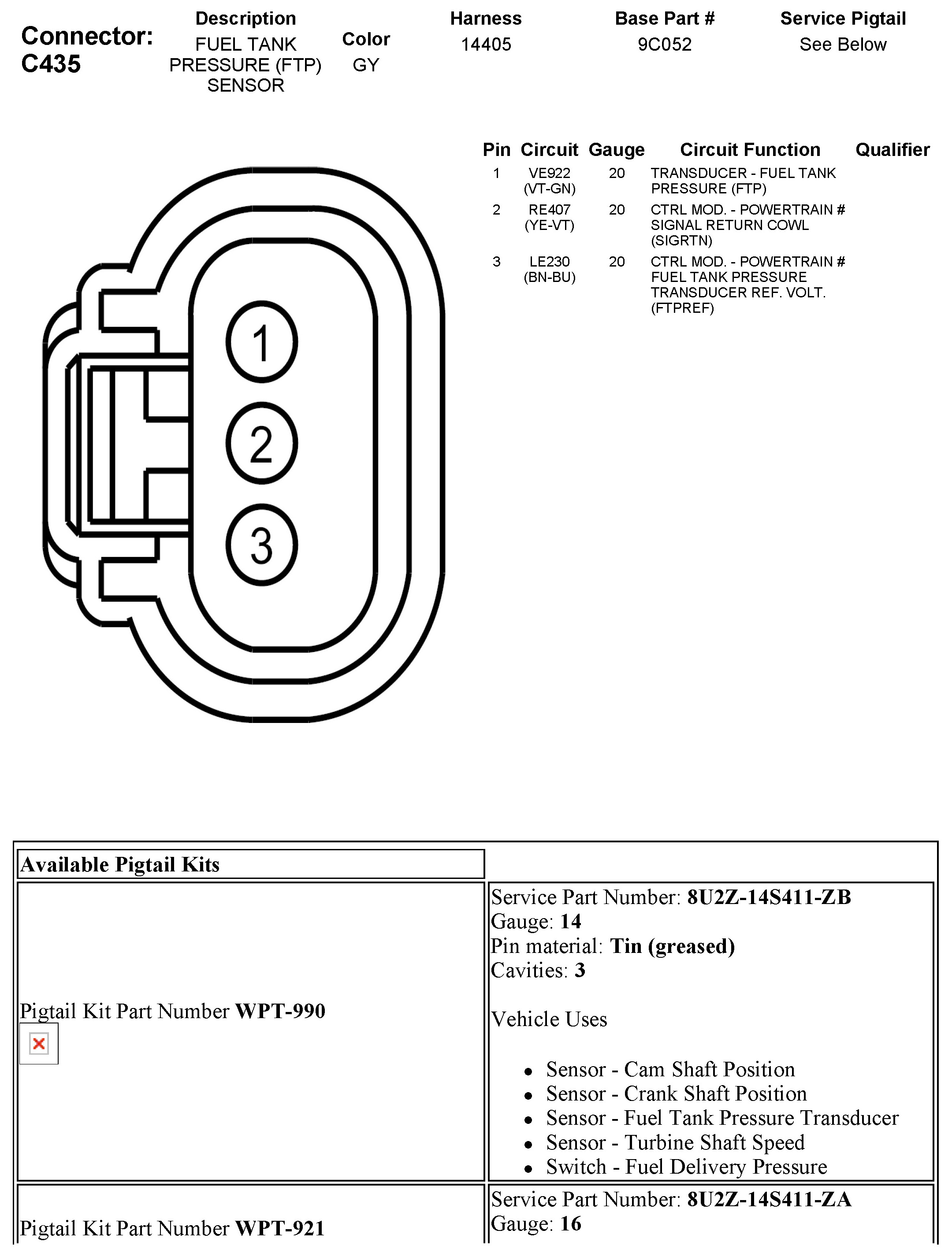 Fuel Tank Pressure Sensor: Diagrams