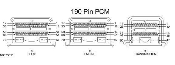 Powertrain Control Module (PCM) Connector - For PCM connector views or reference values, refer to Reference Values.