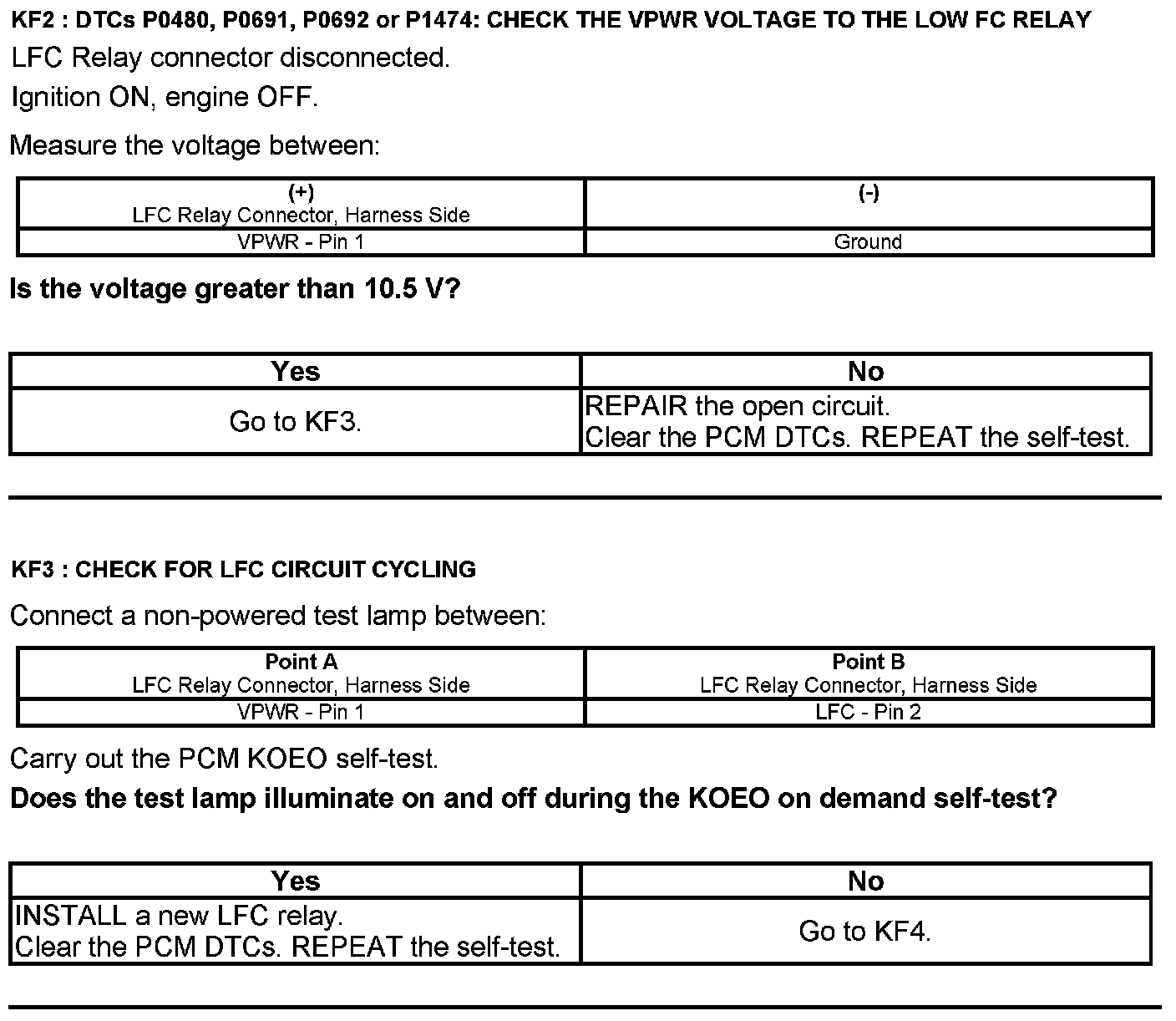 Home >> Lincoln >> 2012 >> Navigator 2WD V8-5.4L >> Repair and Diagnosis >> Powertrain Management >> Computers and Control Systems >> Testing and Inspection >> Pinpoint Tests >> Test KF: Fan Control Relays