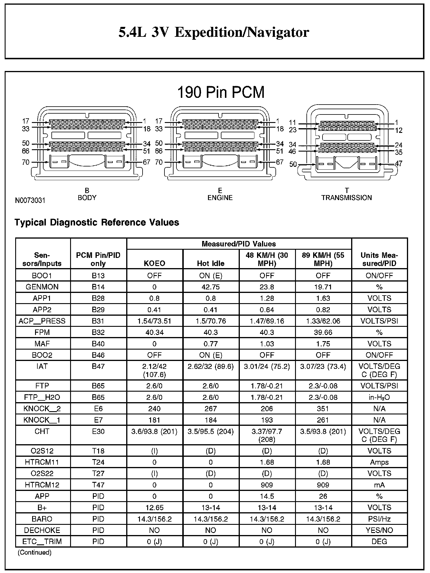 Home >> Lincoln >> 2012 >> Navigator 2WD V8-5.4L >> Repair and Diagnosis >> Powertrain Management >> Computers and Control Systems >> Testing and Inspection >> Scan Tool Testing and Procedures >> Typical Diagnostic Reference Values