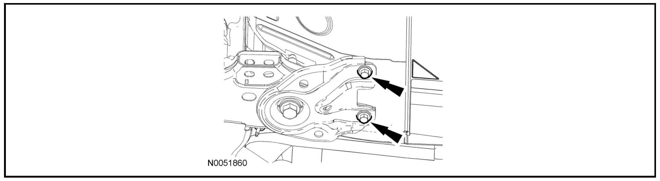 Remove and discard the subframe bracket-to-body bolts.