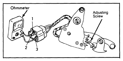 - Slowly increase engine speed. Turn adjusting screw until continuity is broken between terminals No. 1 and 3 at RPM specified in IDLE SWITCH CONTINUITY table. Replace switch if it does not operate within specifications.IDLE SWITCH CONTINUITY