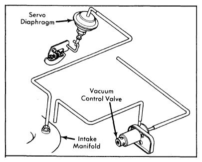 - Disconnect vacuum tube at manifold, between vacuum control valve and intake manifold. Run tube directly from intake manifold to servo diaphragm in order to apply manifold vacuum to diaphragm. See Figure.