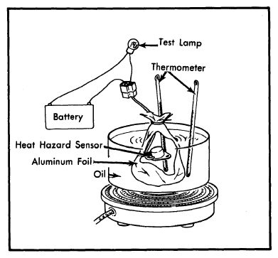 3. Gradually heat oil. Test lamp should go out when temperature inside aluminum foil is 248-284°F (120-140°C). If sensor does not respond as outlined, replace heat hazard sensor.