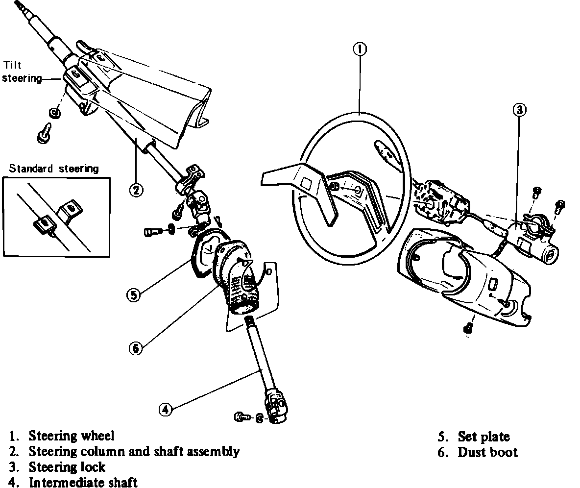 Fig. 1 Exploded view of steering column. 1984-85 GLC: