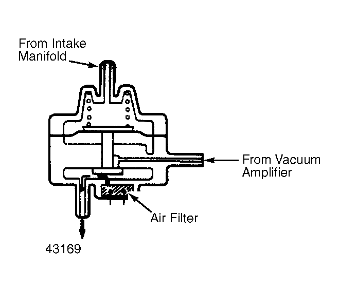 Diaphragm is used to stop operation of EGR system during deceleration whenever intake manifold exceeds 25 in. Hg, by closing vacuum passage from vacuum amplifier and bleeding air into EGR valve to seat valve. See Fig 1 .