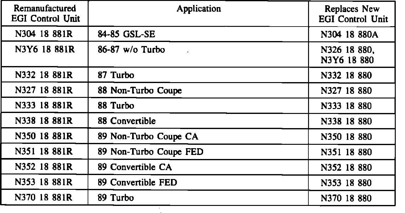 In an effort to reduce the cost of repair, remanufactured EGI control units will be available effective July 5, 1989. These control units replace new EGI control units when replacement is necessary for models listed in the Parts Information section.