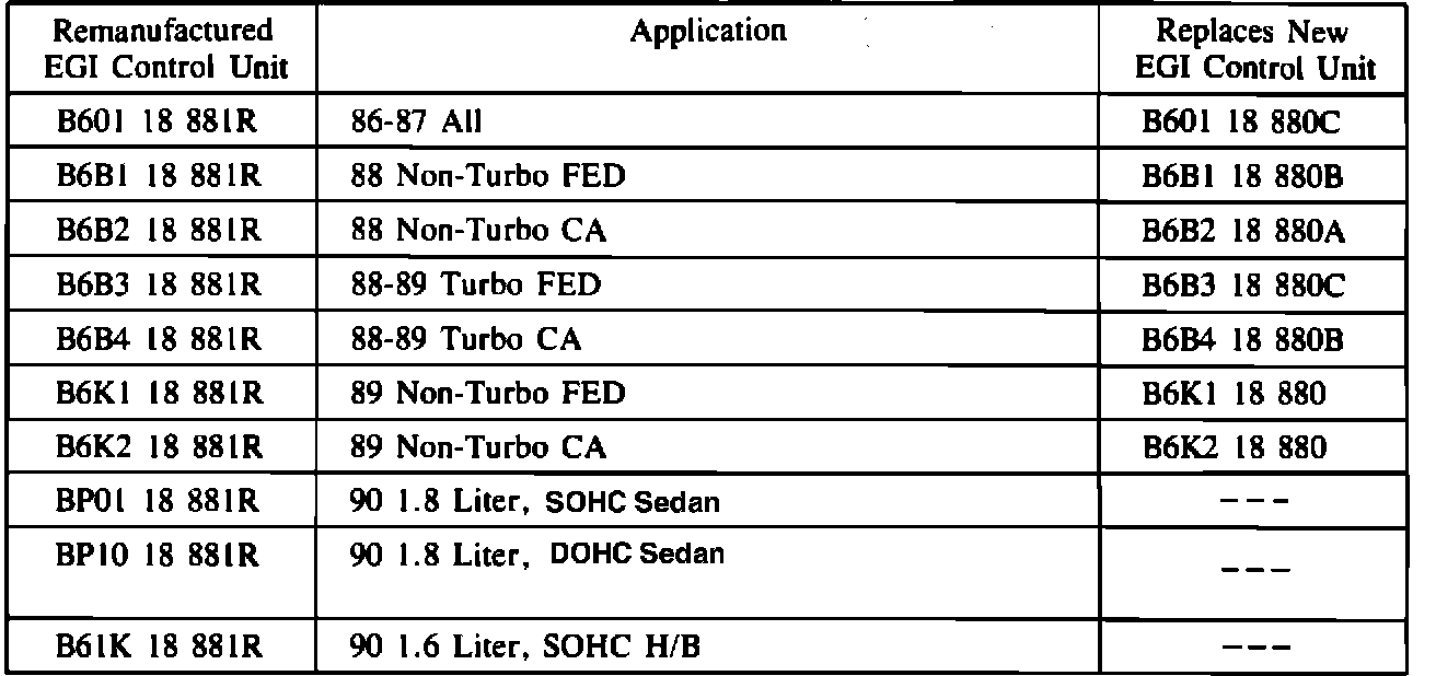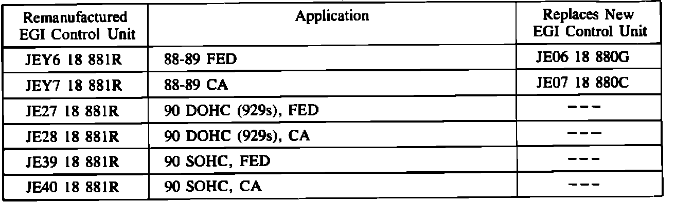Home >> Mazda >> 1984 >> RX7 2RTR-1308cc 80 >> Repair and Diagnosis >> Powertrain Management >> Computers and Control Systems >> Engine Control Module >> Technical Service Bulletins >> EGI Control Unit - Remanufactured Parts Available