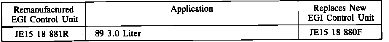 New EGI control units will NOT be available as the remanufactured unit will supersede the new. The units must be returned in accordance with the procedures prescribed in Parts Bulletin II/48E or E-9-89. Failure to do so will result in core forfeiture. These procedures include, but are not limited to, completion of the "Core Return Request" and "Core Credit Request". This information is critical to the program's success. Do not include the bracket when returning the core. The bracket should be used when installing the remanufactured control unit. Please return cores WITHIN 7 DAYS to insure continued availability of remanufactured units.