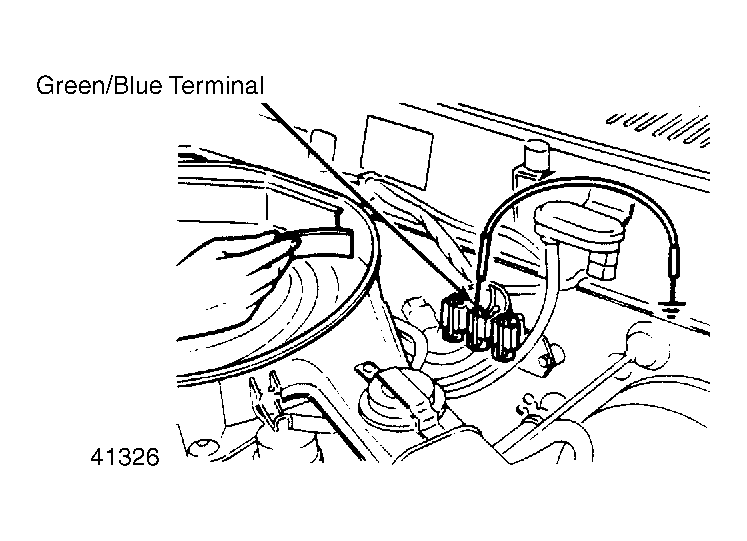 - Ground the Green/Blue wire terminal of 3-way solenoid valve with a jumper wire. Verify that air is being drawn into No. 2 inlet port of valve. See Fig 1 .