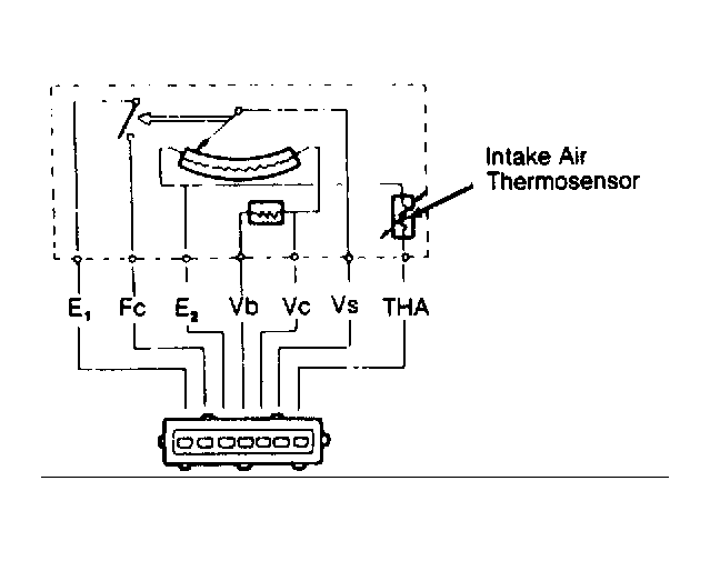 With ignition off, remove connector and check resistance between terminals. If resistance is not within specifications given in AIRFLOW METER SPECIFICATIONS table, replace airflow meter assembly. SeeFig 1 .