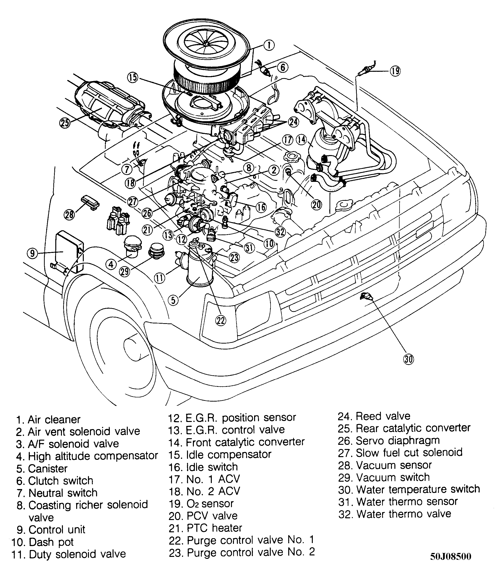 Connect multimeter or Megameter to control unit. See Figure for control unit location. Turn ignition on and measure voltage at each terminal. DO NOT start engine. See Fig 1 for terminal voltages. If voltages are okay, check related circuit for open or short. If voltages are not okay, replace control unit.