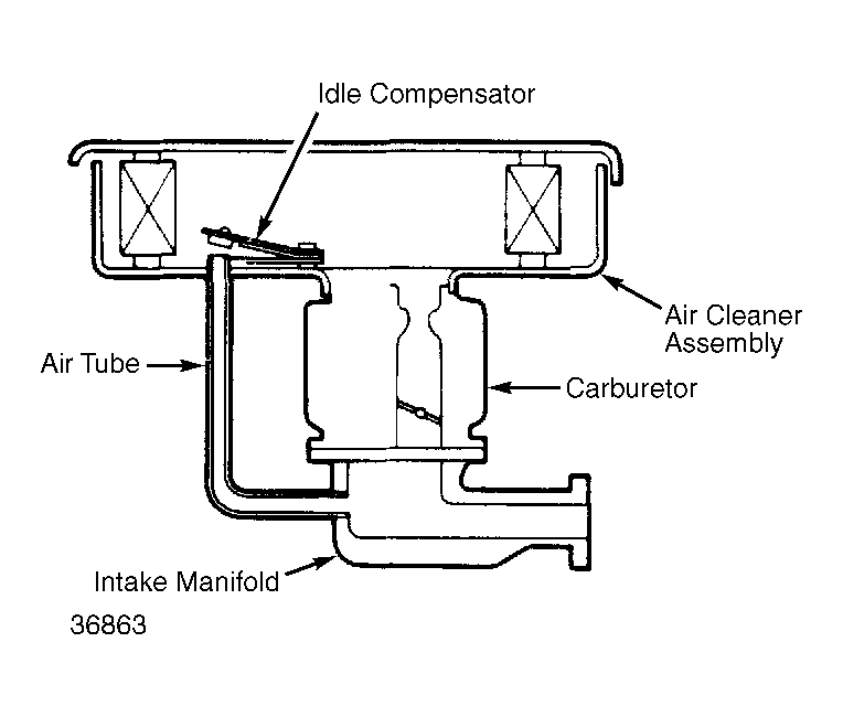 Hot idle compensation system supplies additional air to the intake manifold to maintain smooth idle and reduce emissions. Models use an idle compensator valve. When intake air temperature is more than 145°F (63°C), the idle compensator valve opens and allows air directly into the intake manifold. See Fig 1 .