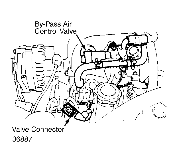 - Warm up engine and run at idling speed. Using a tachometer, check that engine speed decreases when the by-pass air control (BAC) valve connector is disconnected. See Figure .