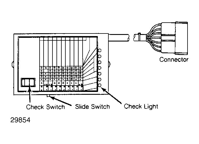 - Start engine and place shift lever in "N". All lights except clutch/brake and combination switch lights should be off. Test actuator operation by setting slide switch to "L" position. Turn check switch "ON" and hold.