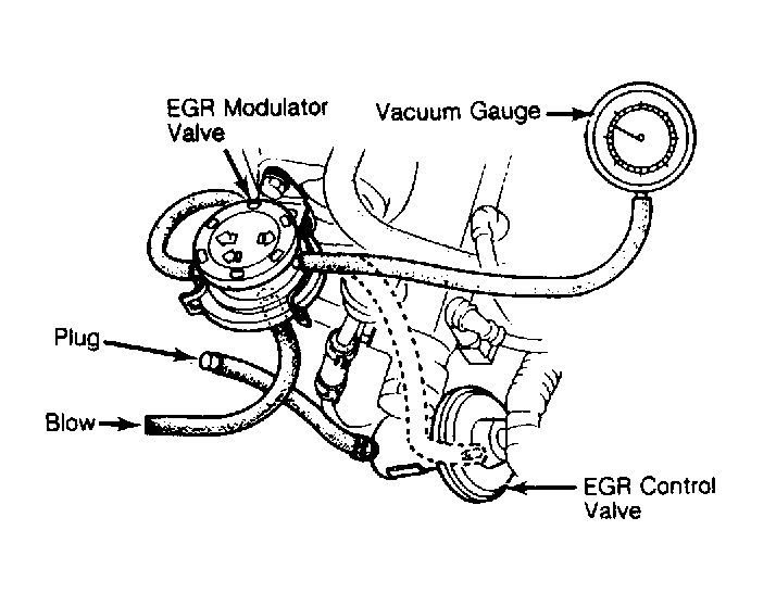 Remove vacuum hoses and electrical connector. Remove 3-way solenoid valve. See Fig 1 . Blow air through port "A" and ensure air passes out port "B". Apply battery power and ground to connector. Blow air through port "A" and ensure air passes out air filter. Replace three-way solenoid valve if defective.