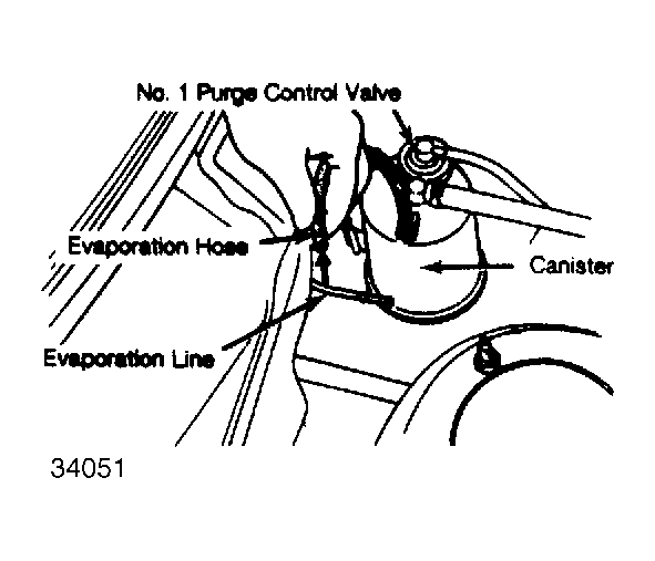 - The No. 2 purge control valve is an integral part of charcoal canister. Disconnect canister evaporation hose at line leading to fuel tank. Air should pass through valve under pressure and under vacuum, if valve is operating properly. See Fig 2