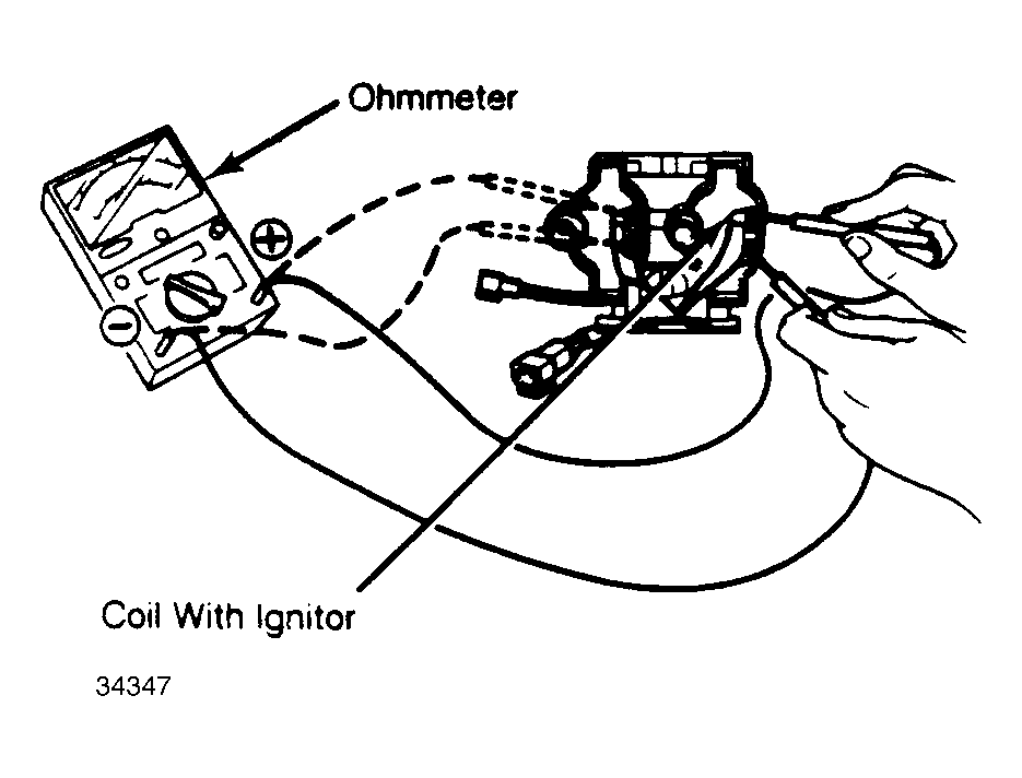 Disconnect negative battery cable. Connect ohmmeter as shown. See Fig 1. Check coil resistance. Resistance should be .2-1.0 ohms. Replace coil as necessary.