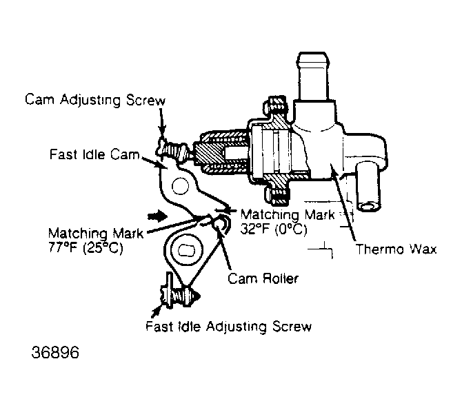 - For this check the engine and throttle chamber must be at 77°F (25°C). For proper fast idle operation the matching mark on fast idle cam must be aligned with center of cam roller.